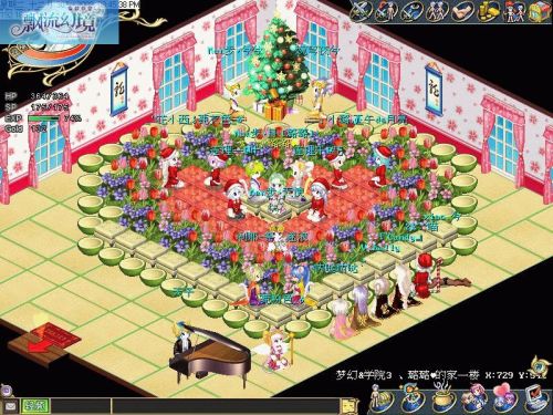这么多招财猫?经商大富豪也为大家送温暖啦!细看图中小店铺,玩家还真是勤快。柜台整齐有序的摆在四周,旁边还种上了鲜花鲜草,仿佛像春天到了似的。她巧妙的将各种经商道具摆在一起,做成了一个巨大的心型!鲜花、柜台、风水鱼、招财猫,飘流商人的四大宝贝全被她利用的淋漓尽致。整幅画面色彩鲜艳,靓丽十足,不得不让人佩服此玩家的创意啊。新年到,有了“大财神”的祝福,今年定会发到底!